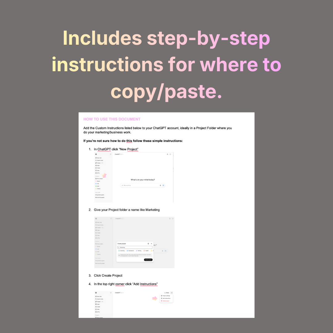 These custom instructions ensure ChatGPT evaluates your marketing through a data-driven, conversion-focused lens.